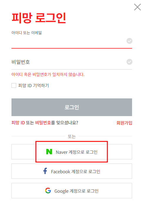 참고로 네이버 계정으로 간단 로그인도 가능합니다.