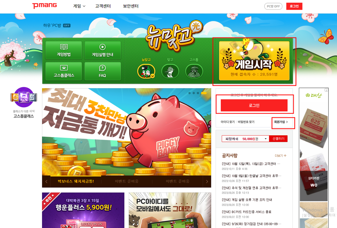 위의 링크를 클릭하면 아래와 같이 피망뉴맞고 페이지로 바로 접속이 가능합니다. 아래의 그림을 클릭해도 피망 뉴맞고 홈페이지로 바로 갈 수 있으니 참고하시기 바랍니다.