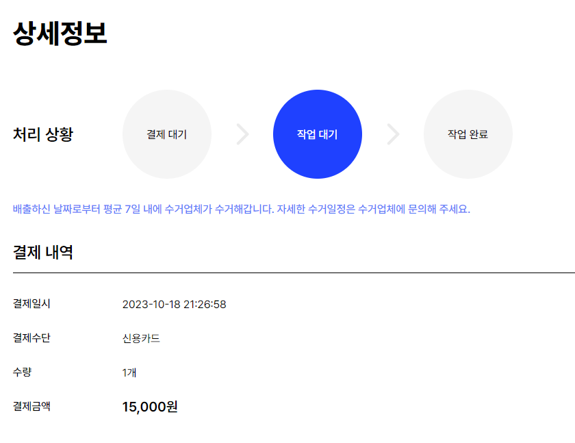 아래는 결제가 완료된 화면입니다.