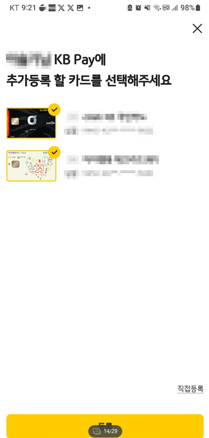 2. KB PAY 앱 카드 등록