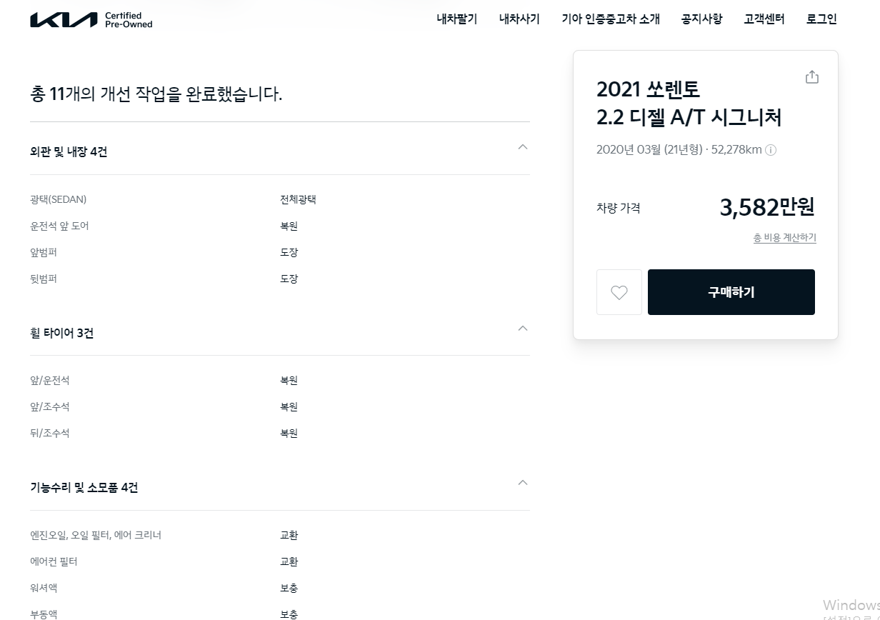 기아에서 작업을 했기 때문에 일반 중고차 사이트에서 구매하는 것 보다는 충분히 조금 더 신뢰할 수 있는 장점이 있습니다.