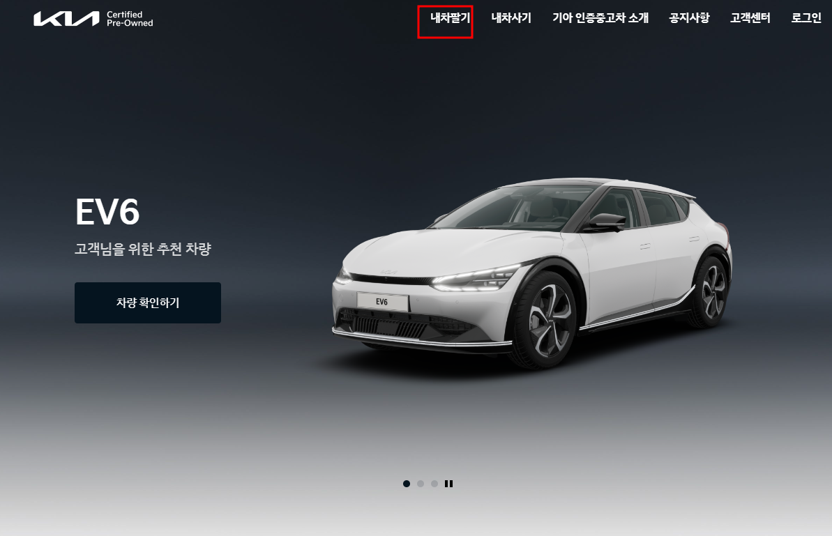 아래의 화면과 같이 홈페이지 상단의 내차팔기를 클릭합니다.