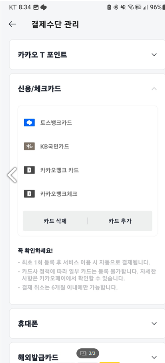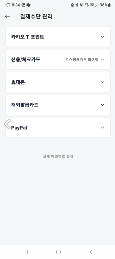 아래의 그림과 같이 결제수단 관리를 클릭합니다.