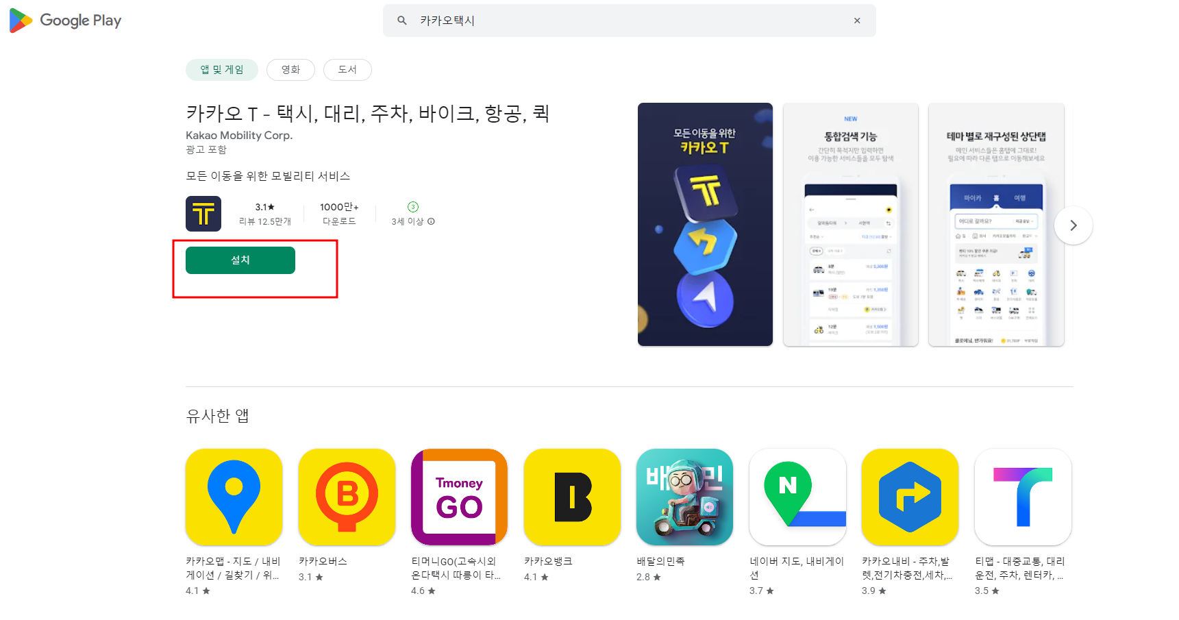 아래의 링크를 클릭하면 카카오택시 설치페이지로 바로갈 수 있습니다.