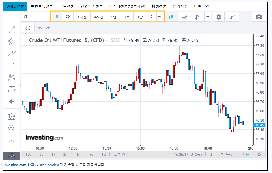 아래의 차트는 인베스팅닷컴의 원유가격을 실시간으로 보여주고 있습니다.