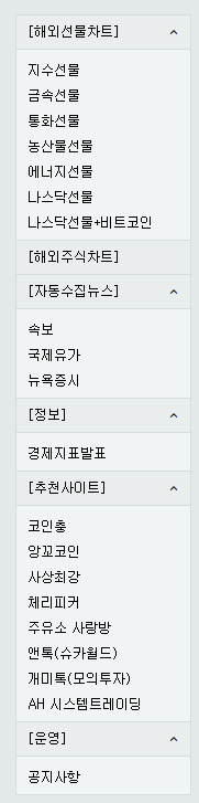 상단의 메뉴를 보면 WTI 유가선물가격 뿐 아니라 브렌트유 선물 / 골드선물 / 천연가스선물 / 나스닥선물 / 항생선물 / 달러지수 / 비트코인 가격 등을 볼 수 있습니다.