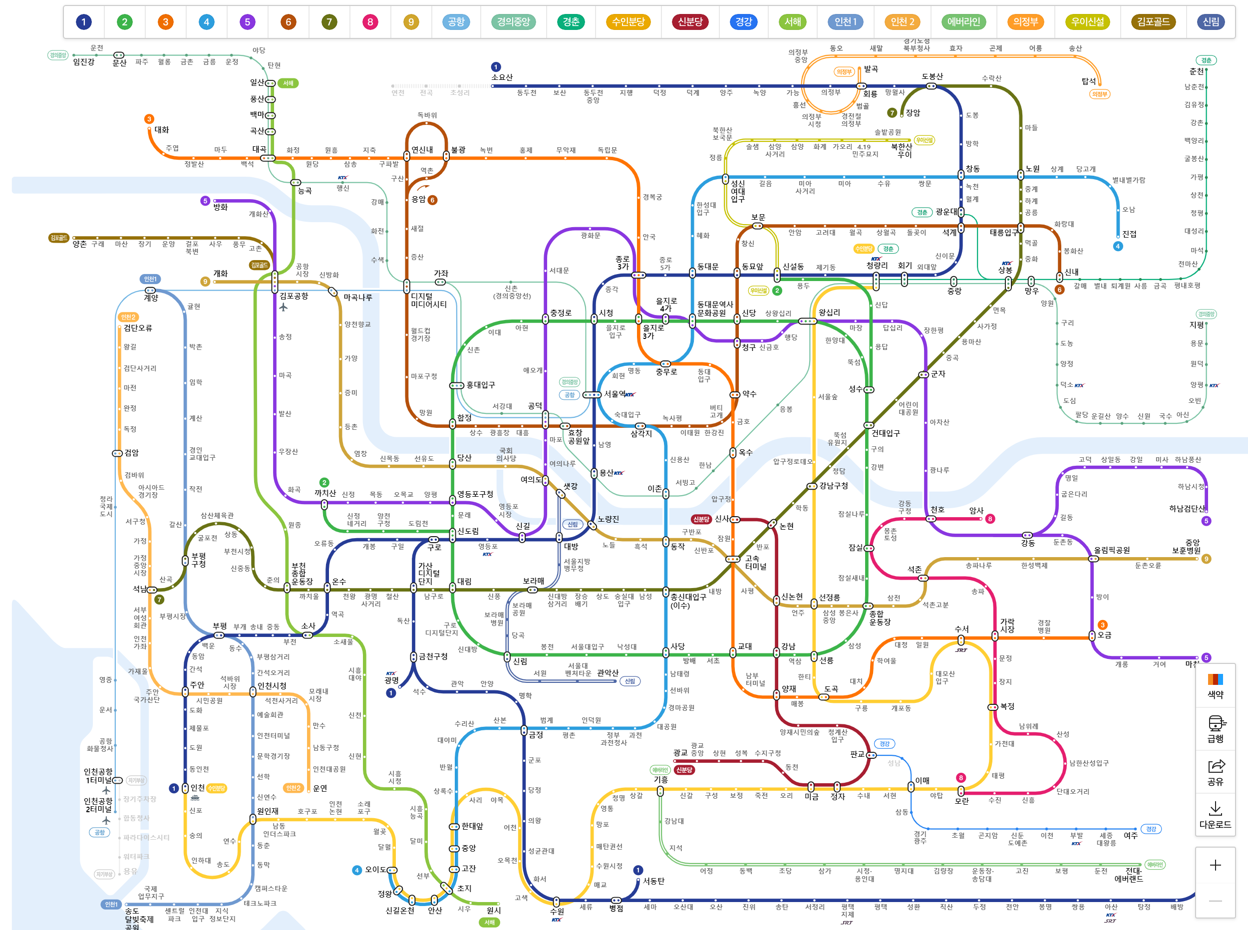 지하철 노선도 크게보기