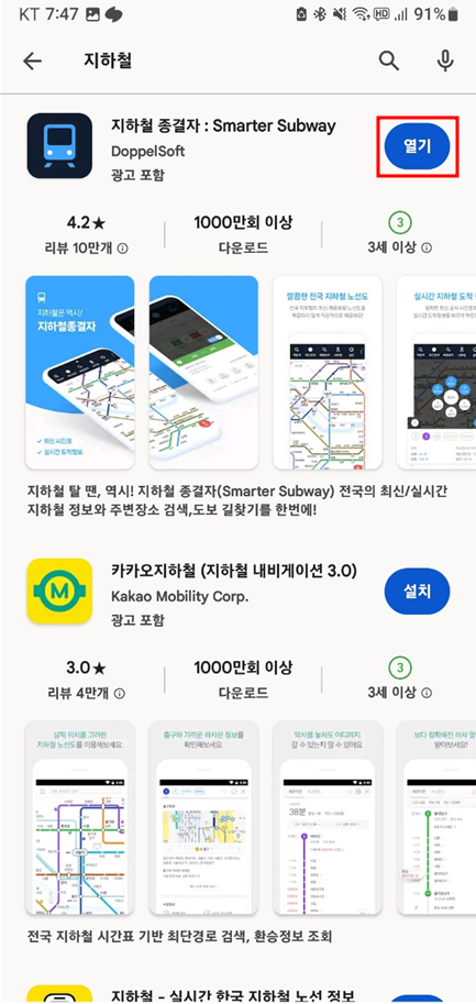 지하철 어플을 추천드립니다. 아래의 링크로 빠르게 설치할 수 있습니다.